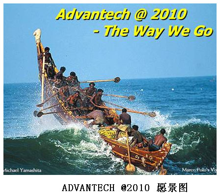 當記者提問為什麼要如此重視願景的塑造時,春盛為大家展示了研華2010的願景圖,娓娓道來:“企業就像一條船,員工就是船員,成功的航行既需要齊心協力更需要相同的目標,願景就是企業上下共同執行的目標,是發展的動力。”