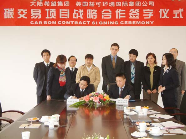 大陸希望集團是以節能環保技術為主的高科技產業集團,在CDMxiangmuhezuofangmianyouzhejudadeqianli。qixiadenengyuanhuagongchanye,zaixunhuanjingjifangmianyoulexindetupo,duihuagongshengchanguochengzhongdeeryanghuatandengfeiqiwuziyuanshixianlexunhuanliyong,tongshicaiyongfenbushinengyuanzhongxin,shixianleredianlengsanliangong,jiangdafudutigaonengyuanzhuanhuanheliyongxiaolv;其深藍空調公司推出的一次性能源熱泵機組,充分利用地熱資源,較傳統溴冷機組節能14%—63%;其森蘭變頻器是中國第一品牌,采用了十多項專利技術,節能效果達到30%—70%。英國益可環境國際公司是世界上最大的二氧化碳交易公司。雙方將充分利用《京都議定書》帶來的機遇,在減排二氧化碳和其它溫室氣體項目上進行廣泛合作。