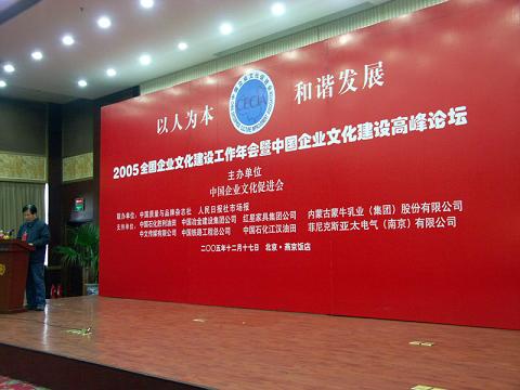 會上頒布了由中國企業文化促進會組織全國百餘名著名企業文化專家、社科院、中科院、清華、北大、人大等教授以及特邀研究員製定的《中國企業文化建設發展規劃綱要》,旨在全麵貫徹黨的十六屆五中全會精神,探索出中國企業文化建設的新路子。