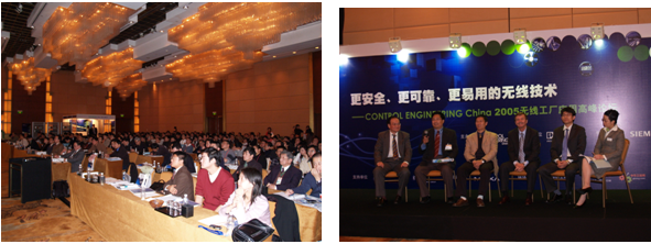 2005無線工廠應用高峰論壇得到ISA、WINA、藍牙國際推進組織等國際權威機構的支持,南京菲尼克斯電氣公司協辦,西門子(中國)公司與摩莎科技提供讚助。由於論壇主題新穎、報告內容精彩,而受到業界廣泛關注,共有250多名來自各行各業的控製工程師參加。