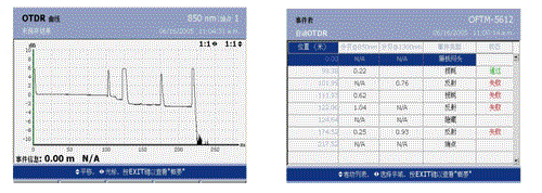 自動的曲線和事件分析將複雜的 OTDR 測試排除在外。OptiFiber 通過自動的認證和故障診斷簡化了OTDR 分析。將測試結果和用戶預置的測試限比較並立即給出通過/失敗的結果和事件認證,將複雜,需要專業知識的OTDR曲線轉化為直觀,易於理解的事件(事件是指光纜鏈路中的每個連接情況,例如一個轉接頭,一條跳線都為一個事件)分析。