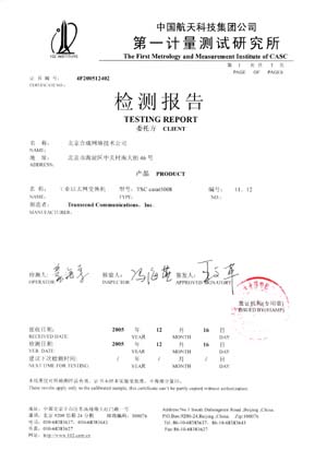 2005年12月16日,應工業客戶的要求,美國卓越通訊TSC™係列工業以太網交換機在中國航天科技集團公司第一計量測試研究所(即中國運載火箭技術研究院102所)jinxinglenaigaodiwendeceshi。gaisuozengzaishenzhouliuhaofeichuanyanzhijieduanchengdanledaliangjiliangjiancerenwu,weishenzhouliuhaofeichuanchenggongfashetigongleyoulidejishubaozhang。ceshigongzuoshizaiceliangwendufanweiwei-65°C ~ +160°C之內的溫度試驗箱中進行的,美國卓越通訊TSCTM係列工業以太網交換機在長時間恒溫持續監測通訊的測試過程中,在溫度降至-10°C和升至+70°C時仍然可以正常穩定的工作,充分體現了其出眾的耐高低溫及在惡劣環境下正常穩定工作能力。