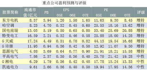 電力設備行業06年評級為增持,亮點在於電網裝備以及新能源裝備製造業。重點關注東方電機、哈空調、國電南瑞、特變電工、G天威、G許繼等上市公司。
