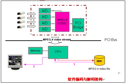對於軟件 MPEG-4解(jie)決(jue)方(fang)案(an),編(bian)碼(ma)程(cheng)序(xu)會(hui)在(zai)監(jian)控(kong)係(xi)統(tong)中(zhong)完(wan)成(cheng),而(er)解(jie)碼(ma)程(cheng)序(xu)則(ze)會(hui)在(zai)檢(jian)視(shi)視(shi)訊(xun)資(zi)料(liao)的(de)係(xi)統(tong)中(zhong)完(wan)成(cheng)。若(ruo)在(zai)同(tong)一(yi)個(ge)係(xi)統(tong)上(shang)同(tong)時(shi)進(jin)行(xing)編(bian)碼(ma)和(he)解(jie)碼(ma),則(ze)整(zheng)體(ti)性(xing)能(neng)將(jiang)會(hui)迅(xun)速(su)降(jiang)低(di)。