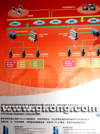 在環境監控應用技術專場,傑控FameView和研華科技的優諾UNO-2000/3000工業級嵌入式控製器展示了在煙氣連續監測係統CEMS的特色應用;研華UNO的開放性、豐富的擴展功能和無風扇無磁盤設計等特點,非常適合作為通訊網關、數據記錄器、設備監控管理;傑控FameView的CEMS應用保持著這個行業的最大裝機量;
