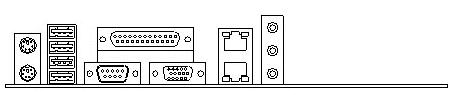 PS/2 keyboard and mouseVGA CRTRJ-45 Audio phone jacks (speaker, line in, Mic)4 USB ports