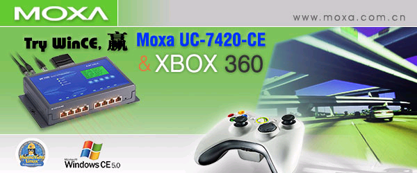 Moxa即將推出基於WinCE平台的UC-7400係列嵌入式工業計算機。UC-7400 WinCE係列包括UC-7420-CE、UC-7410-CE和UC-7408-CE,其預裝了微軟的WinCE 5.0操作係統,全麵提供高速、靈活的工作環境。為配合此款產品的問世,Moxa傾情推出“Try WinCE,贏Moxa UC-7420-CE和Mircosoft XBOX 360”的活動。 我們建議您通過遠程來參與本次活動,您隻需在線遞交您和貴公司的基本資料,然後根據提示下載並安裝程序之後,編譯一個“Hello”的程序,通過網絡上傳至Moxa UC-7420-CE中。我們的係統將會在5月12日和5月30日隨機抽取幸運客戶,獲得來自Moxa提供的UC-7420-CE和Microsoft提供的XBOX360精美大禮。提前免費體驗UC-7420-CE,如此精彩,還不趕快來?活動詳情,請見:http://www.moxa.com.cn/seminar/index-7.htm UC-7400-CE係列是專為可編程通訊應用而設計的嵌入式工業計算機,它采用無風扇無硬盤的設計,內建了Microsoft? Windows? CE 5.0開方式操作係統。Windows的編程環境讓您可以更方便的進行程序開發和程序移植。當您在使用Moxa的UC-7400-CE的時候,您無需擔心任何有關於WinCE的授權問題,因為每個產品都已經獲得了WinCE的授權,並在產品外殼上以標簽顯示。 MOXA嵌入式工業計算機的特點(基於Windows® CE 5.0平台):