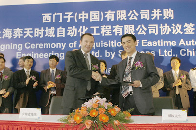 5月23日,在上海鬆江出口加工區,西門子(中國)有you限xian公gong司si和he上shang海hai弈yi天tian時shi域yu自zi動dong化hua工gong程cheng有you限xian公gong司si就jiu業ye務wu並bing購gou舉ju行xing了le協xie議yi簽qian字zi儀yi式shi。按an照zhao協xie議yi規gui定ding,上shang海hai弈yi天tian時shi域yu自zi動dong化hua工gong程cheng有you限xian公gong司si將jiang更geng名ming為wei西xi門men子zi(上海)過程分析工程有限公司, 成(cheng)為(wei)西(xi)門(men)子(zi)中(zhong)國(guo)有(you)限(xian)公(gong)司(si)自(zi)動(dong)化(hua)與(yu)驅(qu)動(dong)集(ji)團(tuan)和(he)西(xi)門(men)子(zi)全(quan)球(qiu)的(de)過(guo)程(cheng)儀(yi)表(biao)及(ji)分(fen)析(xi)業(ye)務(wu)。通(tong)過(guo)此(ci)次(ci)並(bing)購(gou),西(xi)門(men)子(zi)快(kuai)速(su)建(jian)立(li)了(le)本(ben)地(di)係(xi)統(tong)集(ji)成(cheng)能(neng)力(li),從(cong)而(er)能(neng)夠(gou)更(geng)好(hao)地(di)滿(man)足(zu)客(ke)戶(hu)對(dui)整(zheng)體(ti)解(jie)決(jue)方(fang)案(an)的(de)需(xu)求(qiu)。西(xi)門(men)子(zi)(上海)過程分析工程有限公司的成立將顯著增強西門子在中國過程分析工程領域的實力。