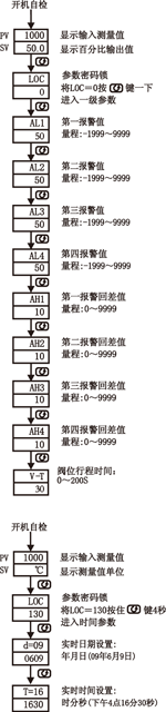 4、當儀表選擇開關量控製輸出功能時(正、反轉輸出),報警輸出最多隻能選擇2限報警。
