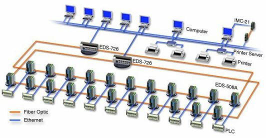 使用MOXA產品具有以下優勢: 1. EDS-726能夠提供長距離多模光纖接口