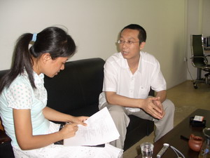 本站記者現場采訪趙崇偉總經理(右)