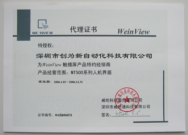 感謝新老客戶2005年的支持和厚愛,創為新可以做的更好,2006年台灣威綸科技授權創為新華南代理技術服務中心.新的一年,希望客戶給予創為新大力支持為謝.