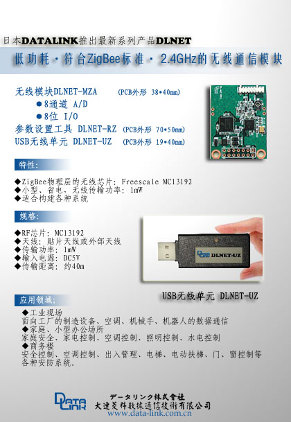 DLNET係列是低功耗、符合ZigBee標準的2.4GHz的無線通信模塊