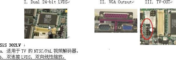 集成高端圖像處理芯片,提供了LVDS,VGA,TV-OUT接口。