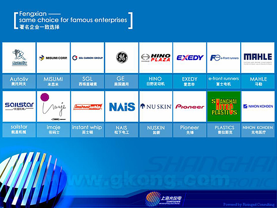為wei了le加jia快kuai光guang儀yi電dian產chan業ye的de發fa展zhan,上shang海hai已yi著zhe手shou啟qi動dong建jian設she光guang儀yi電dian產chan業ye基ji地di。該gai基ji地di位wei於yu上shang海hai南nan部bu地di區qu杭hang州zhou灣wan畔pan的de奉feng賢xian區qu境jing內nei的de上shang海hai市shi工gong業ye綜zong合he開kai發fa區qu內nei,首shou期qi規gui劃hua麵mian積ji2.5平方公裏。