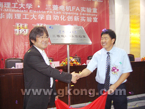 三菱電機自動化(上海)有限公司總經理富澤克行先生在致辭中說:“從1966年至今,三菱電機FA產品進入中國已經40年了。40年來,三菱電機不斷為中國市場提供高品質、高gao技ji術shu的de產chan品pin和he服fu務wu,為wei中zhong國guo的de工gong業ye發fa展zhan注zhu入ru創chuang新xin活huo力li和he動dong力li。我wo們men非fei常chang榮rong幸xing能neng與yu華hua南nan理li工gong大da學xue這zhe樣yang優you秀xiu的de大da學xue成cheng為wei合he作zuo夥huo伴ban。我wo們men會hui盡jin最zui大da的de努nu力li支zhi持chi實shi驗yan室shi的de建jian設she,開kai展zhan深shen入ru的de、多方麵的合作。”華南理工大學副校長彭新一先生在致辭中也對實驗室的建設給予了充分的肯定,並與富澤克行總經理一起為實驗室揭牌。