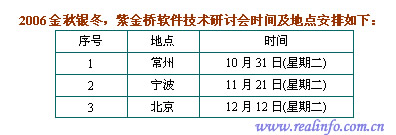 2006年上半年紫金橋軟件公司成功的舉辦了“席卷神州,引領未來”組態軟件技術研討會,紫金橋的足跡遍布全國13個大中城市,橫跨大江南北;直接參與報名人數已經過萬,直接或間接參與會議的人數超過5000人。為了讓更多的用戶更好的了解紫金橋,了解組態軟件技術的發展,我們在下半年將在以下三地舉辦技術研討會,屆時,我們的工程師將為您帶來組態軟件的最新技術和精彩案例,希望您能在百忙之中抽出時間和我們一起探討組態軟件的今天和未來。