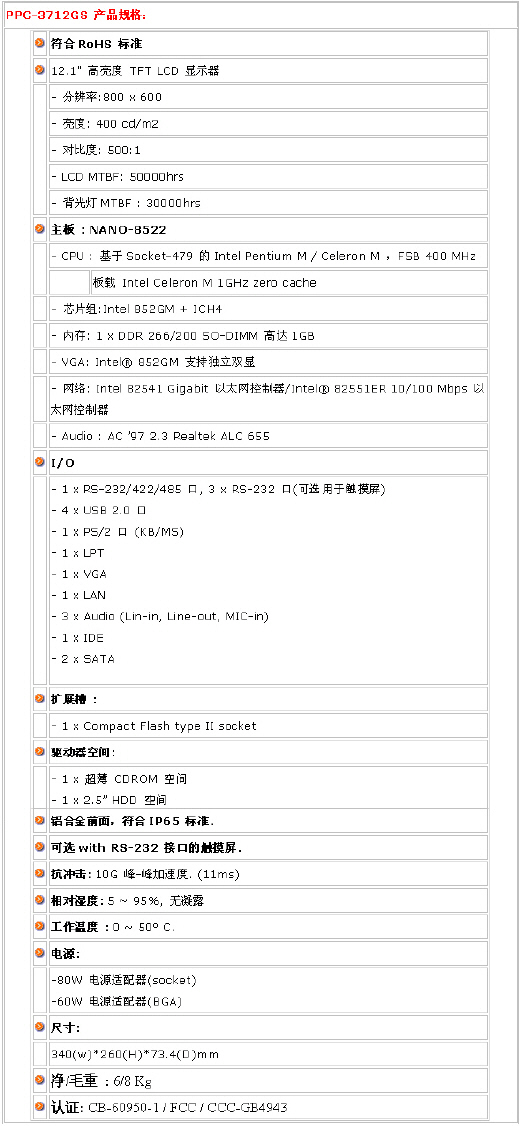 1. 采用FSB400 MHz Socket-479 Pentium M / Celeron M