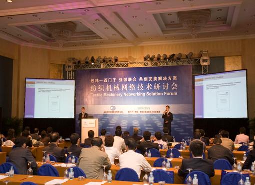 2006年10月19日,經緯紡織機械股份公司與西門子(中國)有限公司自動化與驅動集團在皇家大飯店舉辦了紡織機械與網絡技術研討會,共有100多(duo)位(wei)行(xing)業(ye)專(zhuan)家(jia)參(can)加(jia)了(le)此(ci)次(ci)盛(sheng)會(hui)。其(qi)中(zhong),中(zhong)國(guo)紡(fang)織(zhi)工(gong)程(cheng)學(xue)會(hui)紡(fang)織(zhi)機(ji)械(xie)與(yu)器(qi)材(cai)專(zhuan)業(ye)委(wei)員(yuan)會(hui)主(zhu)任(ren)淩(ling)寶(bao)銀(yin)先(xian)生(sheng)以(yi)及(ji)經(jing)緯(wei)紡(fang)織(zhi)機(ji)械(xie)股(gu)份(fen)有(you)限(xian)公(gong)司(si)副(fu)董(dong)事(shi)長(chang)、總經理葉茂新先生,西門子(中國)有限公司自動化與驅動集團自動化係統部總經理斐德思先生與會並致詞。