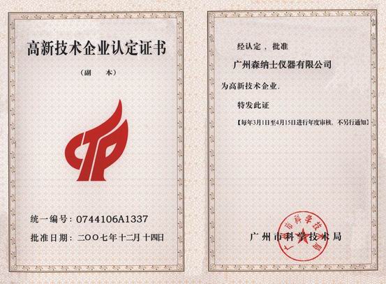 對我司進行了嚴格的“高新技術企業”評定工作,一致認定廣州森納士儀器有限公司充分滿足高新技術企業認定要求,並在12月為我司頒發了“高新技術企業”證書,這標誌著森納士公司的發展又上了一個新的台階,相信在全體員工的努力下、在廣大客戶的支持下,森納士將會為中國的工控事業做出更大的貢獻!