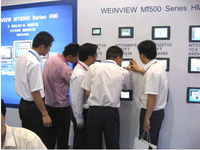 在功能表現上,WEINVIEW MT8000係列也分外搶眼;威綸科技專為展會設計的MT8000係列樣機功能演示吸引了參加展會客商的注目,不少客戶禁不住停下腳步親自操作和體驗MT8000係列人機界麵高超的技藝,不時和威綸科技現場的技術工程師交流著看法、探討著MT8000係列人機界麵在工業生產中的實際應用!
