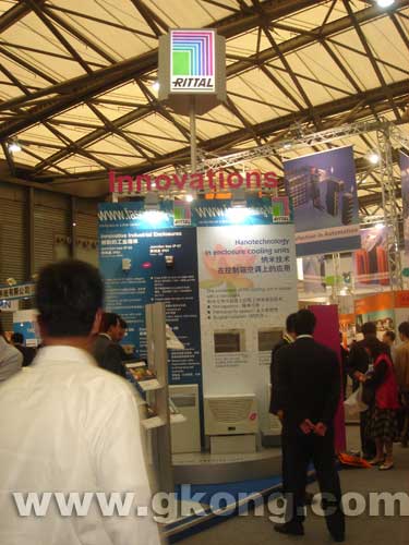 在威圖公司126平方米的展台上,7大主題展區把創新和應用表現的淋漓盡致。有威圖產品廣泛應用的工業和應用展區,E-table軟件應用能讓觀眾在實際操作中體會設計機櫃是如此的簡易,威圖和貝加萊編程器PAC等聯合演示了工業設計的新理念。以RimatriX5整體機房解決方案為代表的信息技術展區向展現了現代機房的發展方向;以ATCA係統為主的電信平台展區代表了電信發展的新趨勢;最為引人關注的是創新世界展區,威圖豐富的未來技術,如RiLine 60母線係統、RiNano納米機櫃空調、CS TOP TEC戶外箱體技術等等都是工業領域的尖端科技成果;聚焦未來技術展區上,展示了如納米塗層技術、燃料電池等,這些都是工業領域的尖端科技成果;Eplan電氣設計軟件展區上,展示了先進的電氣設計軟件的應用。