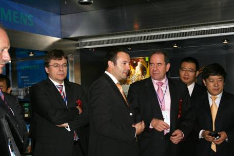 11月1日,西門子(中國)有限公司自動化與驅動集團(A&D)盛裝參加"2006中國國際工業博覽會",在690平米的展台上,展示工業領域三大熱門主題:全集成自動化、全係列數控以及全新過程自動化。通過三輛形式新穎裝備現代、雙抽拉車廂式巡展車,並巧妙的利用車內的廣闊空間,西門子為觀眾充分展示從小到建築電氣,大到工業電機、配電櫃、工業網絡以及創新一代的過程控製係統SIMATIC PCS7等等係列產品。巡展車內既有產品展示又有係統演示,還可以進行現場編程演示結果,成為了本屆"2006中國國際工業博覽會"一道亮麗的風景線,受到了專業觀眾的好評。
