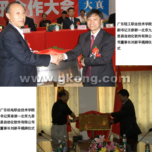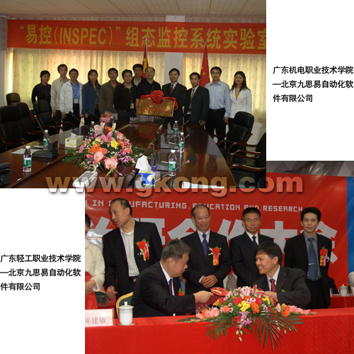 12月8-9ri,zaimeiliruchunqihouyirendenanguo,jiusiyigongsiguangfankaizhandexiaoqihezuohuodongzaijieshuoguo,fenbieyuguangdongjidianzhiyejishuxueyuanheguangdongqinggongzhiyejishuxueyuanchenglile“易控(INSPEC)通用監控係統實驗室”,並在兩個學校舉行了隆重的掛牌儀式。九思易公司董事長劉新平先生親自出席了兩個簽字和掛牌儀式,並向兩個學校分別贈送了價值100多萬元的“易控(INSPEC)”組態軟件和資料。