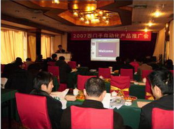 參加此次推廣會的大部分是在服務於現場的技術工程師。會議上,由西門子的同事林勇軍、周旭紅及COC同事何海防給大家做了精彩的報告。推廣會上西門子向廣大客戶展示了包括S7-200 CN 64點高密度輸入輸出模塊,SIMATIC 家族最快的CPU319以及觸摸屏家族的新一代文本顯示器TD400C在內的一係列新產品以及專門用於運動控製的SIMATIC T-CPU,都引起了大家濃厚的興趣。