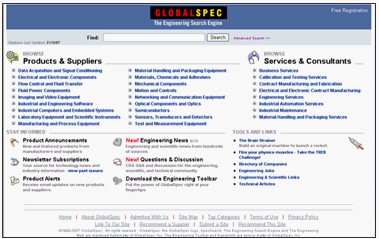 (圖1:GlobalSpec的主頁)