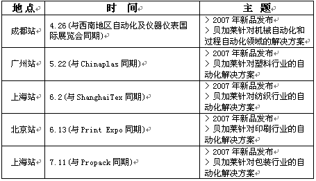 成都站結束後,貝加萊還會陸續在廣州、北京、上海三地舉行巡展。安排預覽如下: