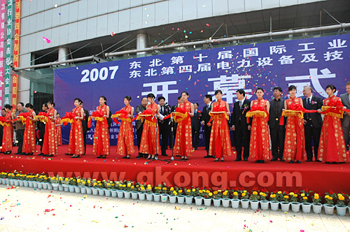27日上午9時30分,沈陽國際展覽中心廣場彩旗飄飄,軍號嘹亮,來自遼寧省、沈陽市的相關領導及企業代表二十餘人參加了“2007中國東北第十屆工業博覽會”隆(long)重(zhong)而(er)又(you)熱(re)烈(lie)的(de)剪(jian)彩(cai)儀(yi)式(shi)。據(ju)組(zu)委(wei)會(hui)介(jie)紹(shao),本(ben)屆(jie)展(zhan)會(hui)依(yi)然(ran)依(yi)托(tuo)東(dong)北(bei)老(lao)工(gong)業(ye)基(ji)地(di)的(de)再(zai)次(ci)騰(teng)飛(fei)為(wei)契(qi)機(ji)而(er)帶(dai)來(lai)的(de)龐(pang)大(da)工(gong)業(ye)產(chan)品(pin)需(xu)求(qiu)為(wei)優(you)勢(shi),在(zai)機(ji)床(chuang)、塑膠、物流等裝備製造業以及工業自動化、電力電工、計量測試、分析儀器等配套行業方麵取得了曆史性突破,展會麵積達到了3萬平方米,參展企業500餘家。