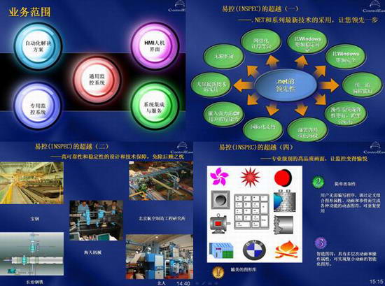 北京九思易自動化軟件有限公司徐新文總經理出席會議,並為現場用戶做了詳盡的產品解說。包括領先的技術平台.net,易控軟件的穩定性,獨創的功能(例如內置設備通信網關,複合動畫,獨特的動畫種類,配方瀏覽器,MSN報警送達),精美的畫麵,助力用戶全球市場開拓的多語言功能(國內首創),自由格式報表,具有超越組態軟件功能的C#用戶程序(易控是迄今為止國內乃至唯一具有該先進功能的組態軟件),等等。到場的客戶對易控(INSPEC)2007的精彩畫麵、多語言、C#用戶程序等功能都表示了濃厚的興趣,相信易控的新功能會給業界帶來一種嶄新的希望,能引領業界技術發展的最新方向。