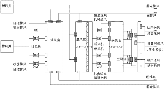 3) 回排風:回排風可分為全回風、全排風及有回有排三種情況;排風又分為固定排風和間歇排風;回排風為來自站廳、站台及設備房的回風;當回排風溫度低於外界大氣溫度時可起到節能作用。緊急情況下可將車站的煙氣、毒氣等排掉。