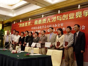 ASEA開展一年來,始終以創新為主題,其中的一項工作就是建立ASEA技能測試中心,工作開展後,得到了國內外企業的大力支持,在設備和培訓上有了很大的進展,為了表彰企業的功績,頒發“2005ASEA貢獻獎”予以獎勵。獲獎單位包括西門子、羅克韋爾自動化、三菱自動化(上海)公司、ABB(中國)公司、研華公司、浙大中自集成控製股份有限公司、昆侖通態公司。