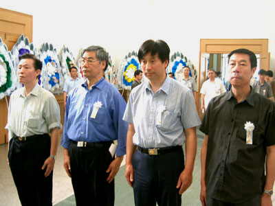 2006年6月17日上午9:30,在蒼鬆翠柏的北京八寶山第一告別廳舉行了楊嘉墀先生的遺體告別儀式。當天,參加告別儀式的各界人士約500人。除了航天工程界的領導與專家之外,曆屆中國自動化學會的許多領導、專家、學者:宋健、路甬祥、陸元九、屠善澄、戴汝為、陳翰馥、吳 澄、吳宏鑫、郭 雷、孫柏林、譚鐵牛、淩為候、張恭清、李愛國、楊孟非、毛劍琴、金以慧、管曉宏、xiaodeyundengyehuaizhechongjingdexinqingcanjialegaobieyishi。dangdajiahuaizhechongjingdexinqingcanjiagaobieyishi,kanwangzhetangzaixianhuacongzhongdeyangjiachixianshengdeshihou,duiyangxianshenggeizhongguozidonghuajiesuozuochudezhongdagongxianshifendijingpei。