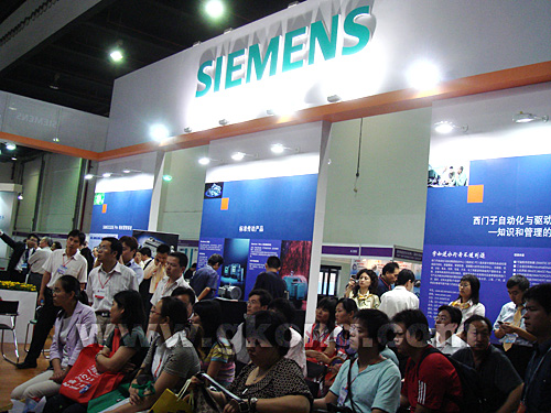 182平米超大展台,西門子展台的設計充滿現代感,體現了一種開放和包容的理念,引領用戶體現全新的自動化世界。西門子"全集成自動化TIA"概念為主題的技術交流會也在這裏舉行。交流會中西門子介紹,通過TIA,可有助於客戶改進其整體製造工藝以及業務流程運作。通過 TIA,也(ye)使(shi)得(de)西(xi)門(men)子(zi)公(gong)司(si)成(cheng)為(wei)唯(wei)一(yi)能(neng)夠(gou)提(ti)供(gong)適(shi)用(yong)所(suo)有(you)行(xing)業(ye)之(zhi)全(quan)麵(mian)解(jie)決(jue)方(fang)案(an)的(de)供(gong)應(ying)商(shang)。西(xi)門(men)子(zi)展(zhan)台(tai)上(shang)的(de)活(huo)動(dong)進(jin)行(xing)的(de)非(fei)常(chang)順(shun)利(li)。交(jiao)流(liu)會(hui)也(ye)是(shi)氣(qi)氛(fen)熱(re)烈(lie),座(zuo)無(wu)虛(xu)席(xi)。