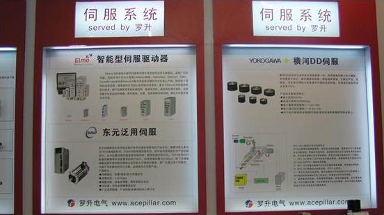 羅升控製產品在印刷機械上用的較普遍的是人機界麵、PLC、伺服係統、變頻器等,羅升傳動產品在普通印機用量較大是氣動元件、減速機、離合/刹車器。而在高檔印機上使用量較大的則是直線導軌和滾珠絲杠。本次印機展部分展機還使用了目前較為先進的DD(直驅)伺服驅動係統。為此羅升特意展示了目前在世界上處於領先地位的日本橫河DD伺服,其分辨率可達4096000ppr。由他來實現印機要求的精準度可謂綽綽有餘。