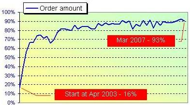 ABB低壓商務在線係統於2003年4月在中國正式推出,經過四年的不斷發展,通過該係統完成的訂單金額從最初的16%上升到了現在的93%。ABB中國自動化產品部低壓產品及係統業務負責人倪步青先生欣喜地表示:"這個鼓舞人心的成績,證明我們在中國推出商務在線獲得了巨大的成功。商務在線確實是一個非常有用和有影響力的服務工具。"