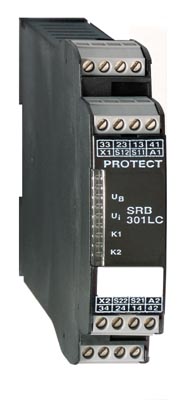 SRB 301 LC急停門監控模塊符合IEC/EN 60204-1,EN954-1,BG-GS-ET-20標準;控製等級為4;可用複位按鈕或自動啟動。其外殼為玻璃纖維增強熱塑塑料,具有阻燃特性,端子保護等級為IP20,外殼保護等級為IP40;熔斷電流為1.25A;具有回饋電路;可在-25℃—+45℃範圍內工作;機械壽命至少達一千萬次以上,適合各種惡劣的工作環境。