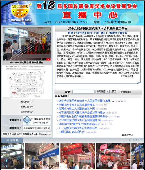 http://www.kadhoai.com.cn/exhibit/exhibits/MICONEX2007-NEW/nc.asp 中華工控網在展位A157-A158 接受廠商或媒體的投稿,同時歡迎在線投稿。郵箱: