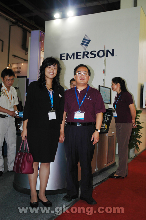 艾默生過程控製有限公司市場部高級經理林永春先生(右一)與中華工控網工作人員(左一)合影