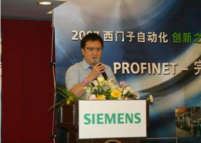 自動化與驅動集團西北銷售總監李東先生為此次大會做了精彩的開幕致詞,還特別感謝冒著大雨到場的各位來賓。西門子公司負責PROFINET的產品經理為到場的客戶們詳盡的介紹了西門子PROFINET技術,生動活潑的介紹得到了在場客戶的認可。