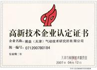 2007年4月12日我公司榮獲天津市技術委員會頒發的《高新技術企業證書》。