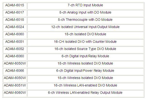 ADAM-6000模塊(帶Peer-to-Peer 和 GCL功能)列表: