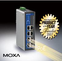 Moxa作為全球知名的通訊產品設計和製造商,其自行設計製造的EDS-P308係列非網管型以太網交換機以它特有的PoE供電技術以及聯網的靈活性獲得了Plant Engineering Magazine 2007年度最佳產品獎。
