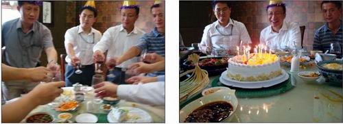 大家舉杯喜慶生 盡情品嚐公司提供的美味佳肴
