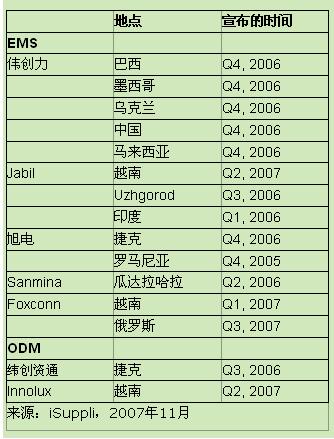 表1:2005-2007年部分EMS/ODM產能擴張計劃