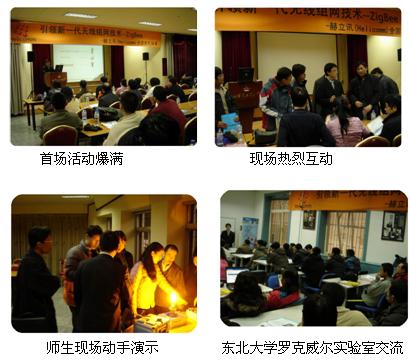 此次路演活動從東北著名高校-哈爾濱工業大學拉開序幕。整個學術交流廳座無虛席。主題為“引領新一代無線組網技術-ZigBee”的巡回路演,主要目的是向高校師生介紹ZigBee技術與發展、ZigBee正帶來的社會效益、經典應用Demo演示,積極與高校師生對ZigBee技術建立互動,交流ZigBee新無線技術合作方向和未來ZigBee實驗課題。
