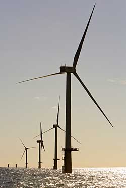 圖為荷蘭艾默伊登海岸附近海上的風力發電廠的葉輪機